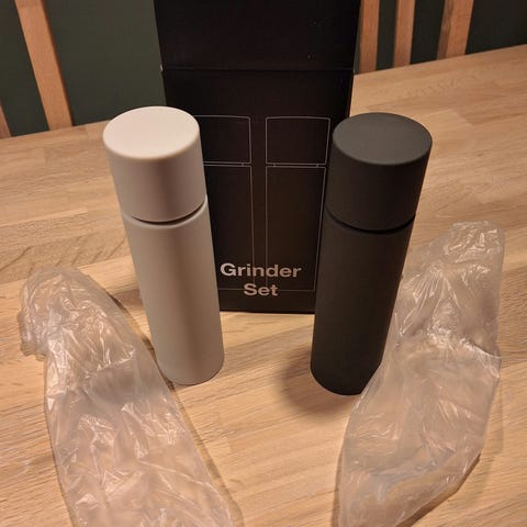 Dette sæt består af en salt- og peberkværn fremstillet af gennemsigtig akryl. Begge kværne måler 21 cm i højden og er designet i Danmark af mærket Pyrolux. Kværnene giver mulighed for at justere formalingens grovhed og passer perfekt til både køkkenet og middagsbordet.