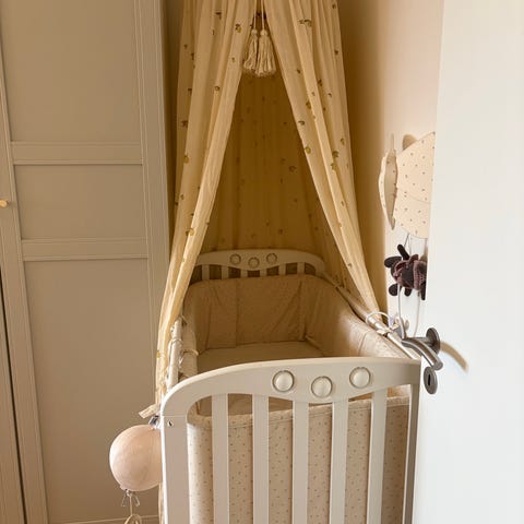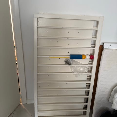 Ældre tremmeseng med tilhørende pusletop og pude. Afhentes hurtigst muligt