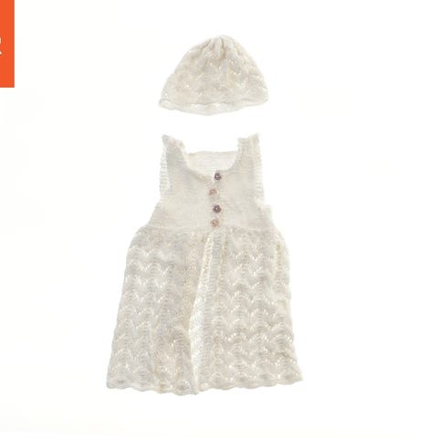 Denne striktrøje til baby er hvid i farven og har lange ærmer. Trøjen har en knaplukning foran med tre knapper og er dekoreret med et mønster i strikken. Den er blød og varm, perfekt til at holde en baby komfortabel.