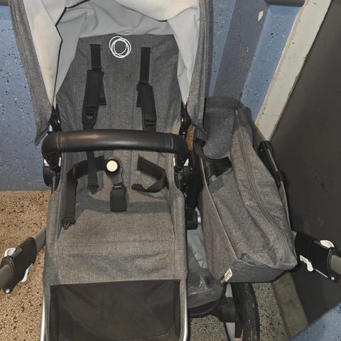 Bugaboo tvillingevogn i grøn farve. Vognen har to side-by-side sæder med justerbare kalecher. Den er udstyret med fire hjul og håndtag foran, samt opbevaringskurv under sæderne. Egnet til transport af to børn samtidig på gåture og hverdagsbrug. Ydermere er der en barnevognskasse til den ene side.