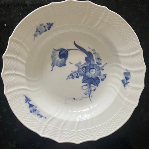 Tags: tallerken, porcelæn, blå, blomstermotiv royal copenhagen, blåblomst, blå blomst