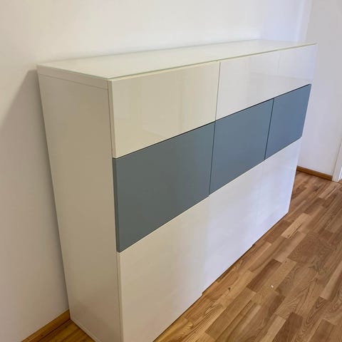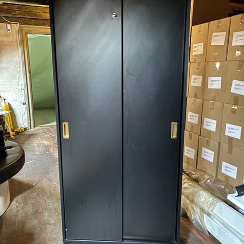Sælger et fint kontormøbel til opbevaring. Det har skyde-låger i begge sider med soft close. Målene er H: 102-104cm (inkl. ben som kan justeres) B: 160cm, D: 45cm
