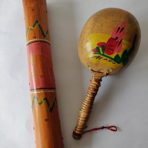 Retro maracas med smuk patina og tegn på flittig brug men har mange rytmer i sig endnu 🌿