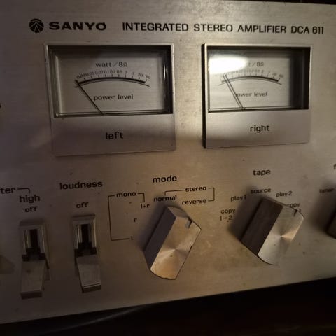 Saba stereo verstärker VS 2160 er egentlig en Sanyo DCA-611. Den spiller lækkert og med overskud på en 70' er agtig måde.