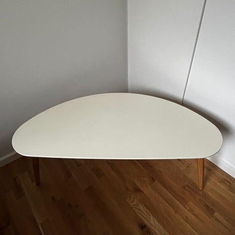 To fine sofaborde i hvid/bambus, der kan sættes sammen på flere måder. Sælges pga. flytning.