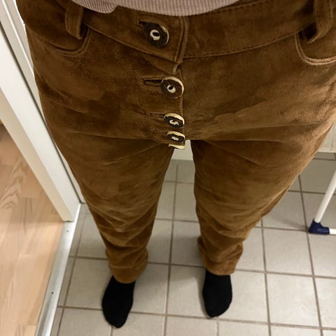 Red Wood bukser til kvinder i str. 44. Bukserne er sorte og fremstillet i læder med jersey-detaljer, ifølge mærket 85 % læder og 15 % jersey i ydermaterialet. Foret består af 95 % polyester og 5 % elastan. Klassisk buksemodel med lynlås- og knaplukning foran samt bæltestropper i linningen. Velegnede som hverdag- eller aftenbukser i garderoben.