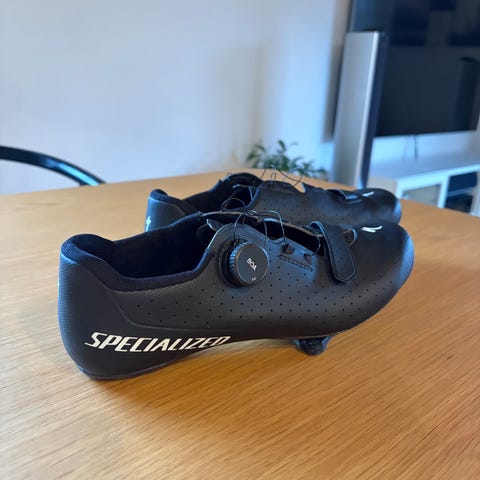 Drejespænde og velcrolukning over vristen. Velegnet som racersko/landevejssko med stiv sål til montering af klamper (ikke inkluderet).