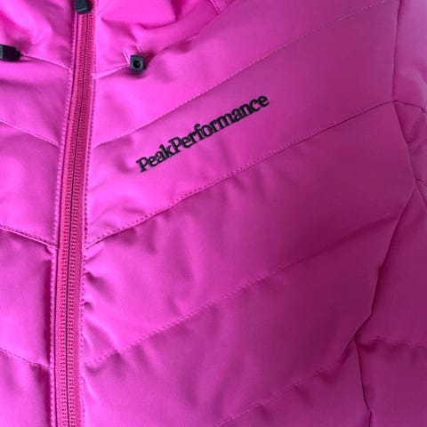 Jakken er fyldt med dun og har en lyserød yderfarve med mørke kontrastdetaljer ved lynlås og kanter. Modellen har hætte, gennemgående lynlås foran samt lynlåslommer i siderne og en mindre lynlåslomme på ærmet med Peak Performance-logo. Quiltet mønster for- og bagpå, der holder dunfyldet jævnt fordelt. Velegnet som varm yderjakke i den kolde sæson.