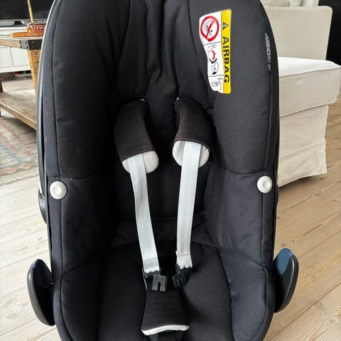 Maxi-Cosi autostol str. 13 i sort. Autostolens Sæde har integreret 5-punktssele og polstret indsats til mindre børn. Bærehåndtaget gør det muligt at bruge sædet som babylift i kortere perioder uden for bilen. Basen på billederne er en isofix-base, som gør montering i bilen mere stabil og enkel, forudsat at bilen har isofix-beslag. Autostolen er beregnet til bagudvendt montering i bilen for øget sikkerhed for barnet.