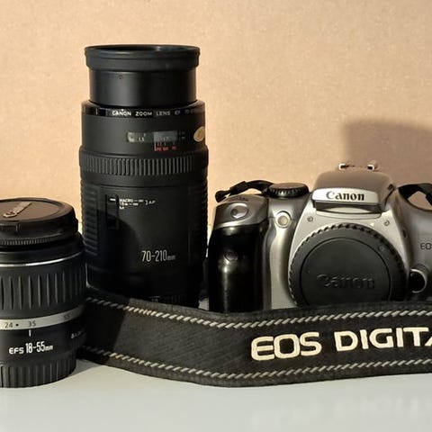 Canon, EOS 350D DIGITAL, Perfekt, Super godt Canon kamera med batterigreb, 2 batterier og oplader. Har en virkelig god linse; Canon Ultrasonic EFS 17-85mm. DELTACO kortlæser medfølger. Alt og alle låg er intakte. Sælges samlet. Ingen forsendelse!!!