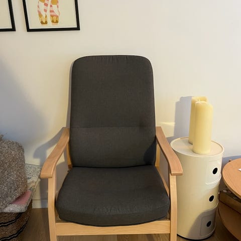 Spritny Farstrup hvilestol. Min mor nåede at bestille den, men døde før den blev færdig.