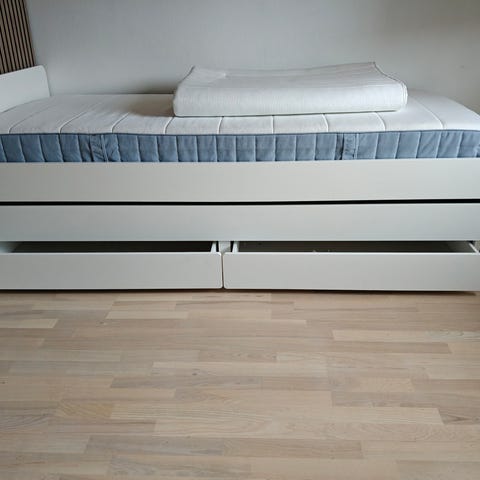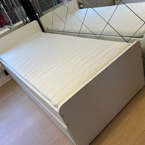 God børneseng fra ikea, uden synlige brugsspor. Inkl madrasser