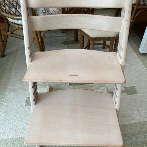 Der medfølger baby bøjle, dog er stroppen noget slidt, som ses på foto.