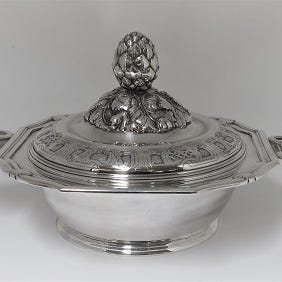 Michelsen. Sølvtekande (830). Længde 22,5 cm. Højde 11 cm. Produceret 1887