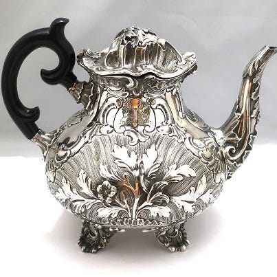 Jens Christian Thorning. Stor sølvtekande med håndtag af ben