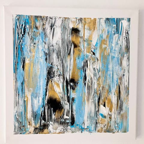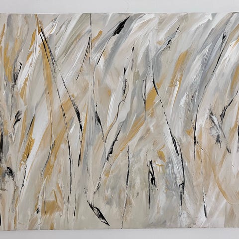 Abstrakt maleri på lærred i nuancer af guld og hvid. Motivet består af overfladestruktur. Mindre Maleri Nedsat