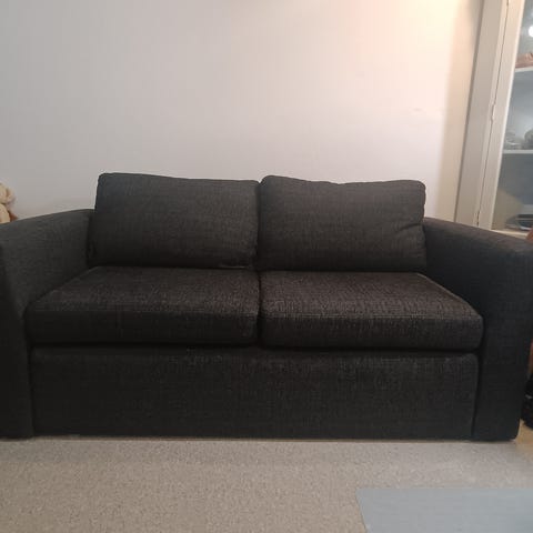 Lille og kompakt sovesofa med sideplads til to. Indeholder opbevaring til sengetøj under sædet. Perfekt til kollegieværelse eller mindre lejlighed.