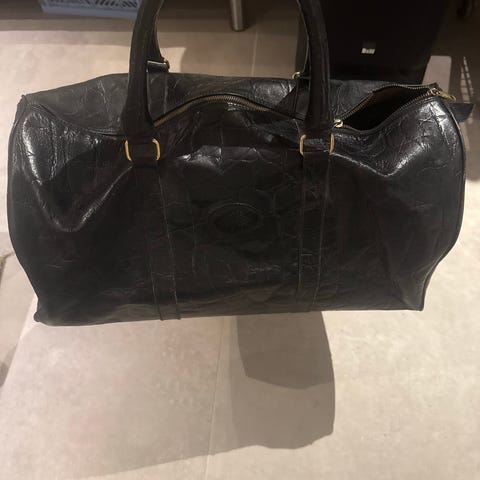 Super lækker stor lækker sort nylon weekend taske fra Mulberry med brune læder detaljer og aftagelig toilettaske med lynlås og forlomme samt hængelås m. Mulberry tree.