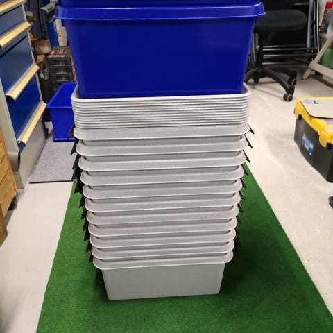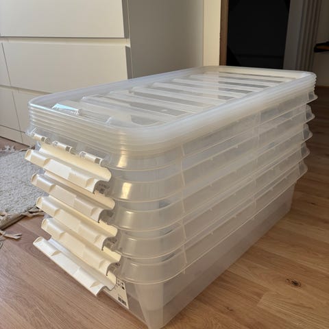 10 stk. 45l (57x39x28 cm) samt 1. stk. 65l (57x39x42 cm) alle med låg.