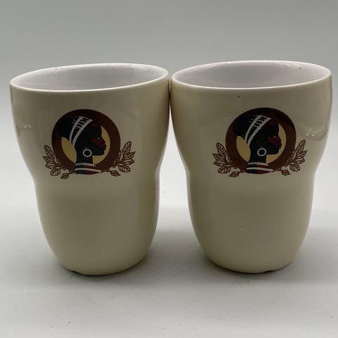 Koppen og underkoppen er fra det klassiske danske kaffemærke Cirkel Kaffe. Sættet er kendetegnet ved det ikoniske logo med "kaffedamen", som oprindeligt blev tegnet af arkitekten Aage Sikker Hansen i 1943.