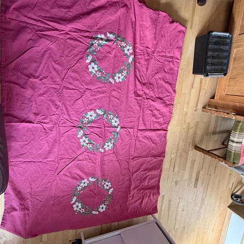 IKEA tekstil i to forskellige mønstre og nuancer af grå og hvid. Det ene stykke har et diskret, vævet mønster med ornamenter, mens det andet har et mere enkelt, ternet/stribet udtryk. Begge stykker kan anvendes som dug, sengetæppe, gardin eller til andre tekstilprojekter i hjemmet. Materialet fremstår som vævet stof med let struktur. Størrelser er ikke oplyst og kan med fordel måles ved interesse.