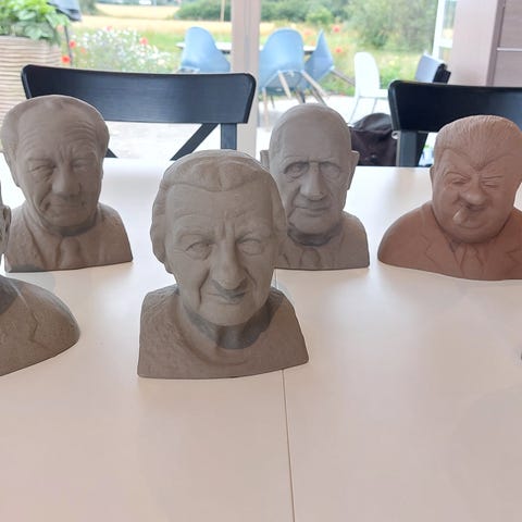 Samlerobjekt. Årets Sparemand 1974, produceret af Søholm keramik for Bikuben, Per Hækkerupi flot stand- med hel cigar.