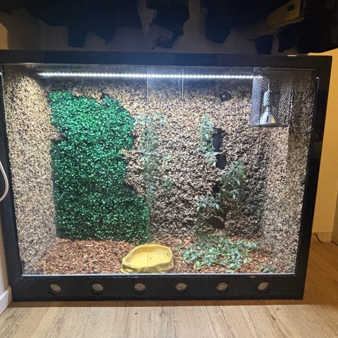 Dine små dyr og krybdyr kan føle sig trygge og veltilpasse i dette must-have terrarium. Kvalitetsmateriale: Terrariet er lavet af konstrueret træ. Materialet er kendt for varmebestandighed og er fugtbestandigt. Det ægte glas misfarves ikke eller bliver gult med tiden, så reptilburet kan bruges i lang tid.God beskyttelse: Terrariet har ingen skarpe kanter indvendigt, så du behøver ikke bekymre dig om, at dine dejlige kæledyr og krybdyr kommer til skade.Godt indsyn: Takket være glasset i dette terrarium kan du tydeligt observere dyrene i buret.Bedre luftcirkulation: Terrariets stålnet skaber god luftstrøm og giver frisk luft i buret.Vi har en overraskelse til dig! Brug rabatkoden dbaXL, når du betaler, og så får du 10% ekstra rabat. Denne rabatkode kan kun bruges til vidaXL-mærkede produkter, og den kan anvendes med et minimum købsbeløb på 750kr. God shoppingtur!