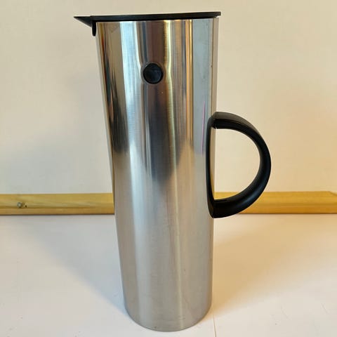 Klassisk Stelton termokande på 1,0 liter i Brushed brass Messing uden brugs spor flot og i orden Jeg har svært ved at få messingfarven på billederne...men den står snorelige...