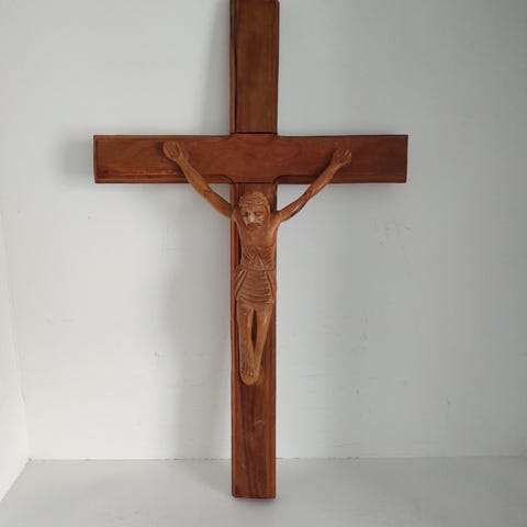 Dekorativt vægkors med Jesusfigur trælook
