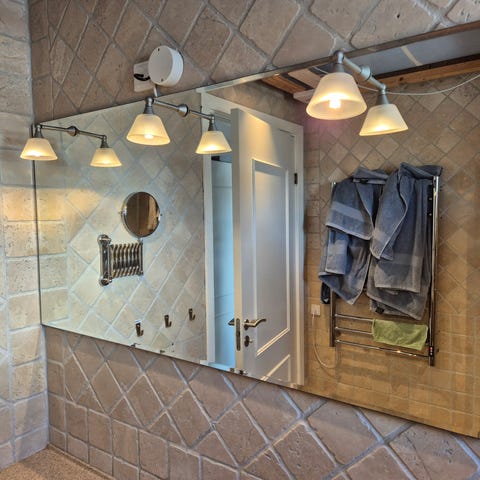 Hjemmelavet spejl med lys. Lyset kan tages af. 3 Ledsjö lamper monteres til en ledning. Sælges grundet flytning.
