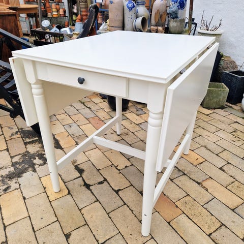 Perfekt klapbord til lejligheder/huse med pladsmangel. Bordet har 3 praktiske skuffer i midten.