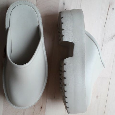 Sjove lyseblå træsko str 38, skumplast m. fine motiver - nye/ubrugte