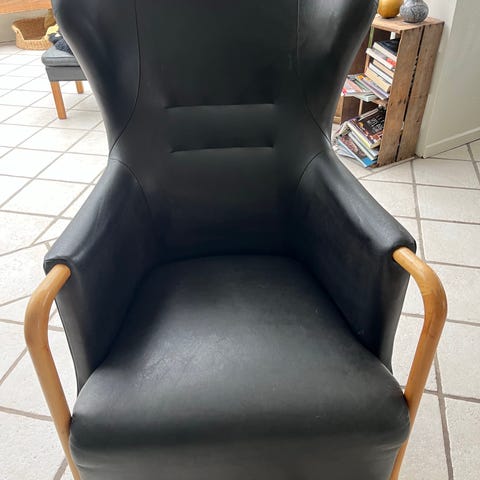 stouby øreklapstol sort læder m skammel