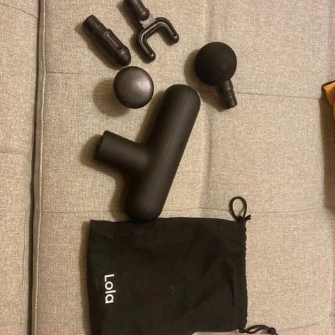 Flowlife Flowgun Go 2.0 massagepistol i mørkeblå farve. Håndholdt massageapparat med flere udskiftelige massagehoveder til forskellige muskelgrupper. Leveres med hård opbevarings- og transporttaske. Egnet til muskelafspænding og punktmassage på hele kroppen, efter løb og træning.