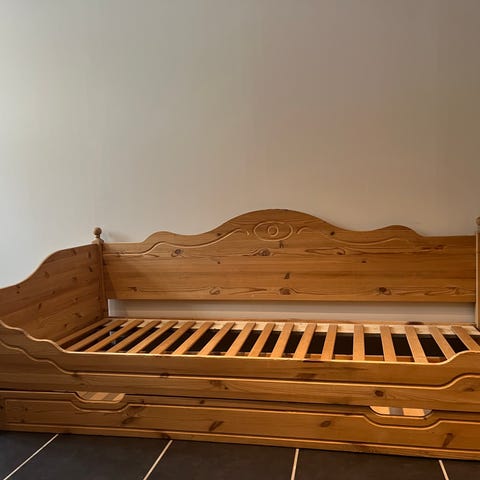Sengemiljø fra 20'erne der inkluderer dobbeltseng 200 x 160 evt. inkl. madrasser 2 . stk. natborde, klædeskab, sminkebord kan afhentes gratis. Velegnet til sommerhuset. Kræver en smule maling