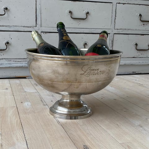 En antik kulspand udført i messing. Perfekt som Champagne -og isspand. Plads til 4-5 flasker.