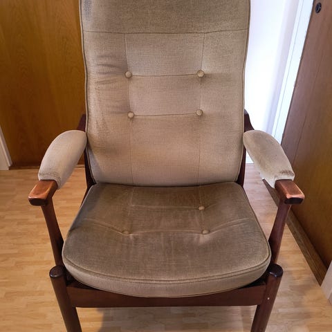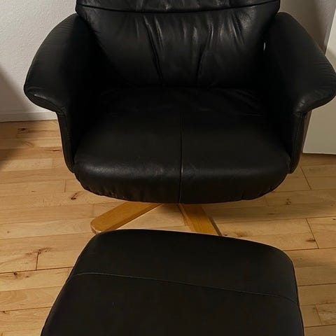 Flot og meget velholdt lænestol med tilhørende skammel og liggefunktion.
