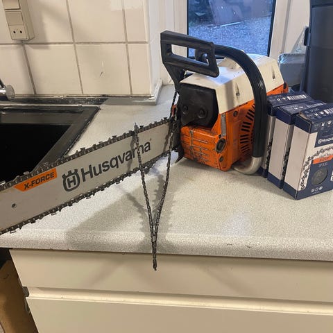 Husqvarna 455 Rancher motorsav og diverse haveredskaber
