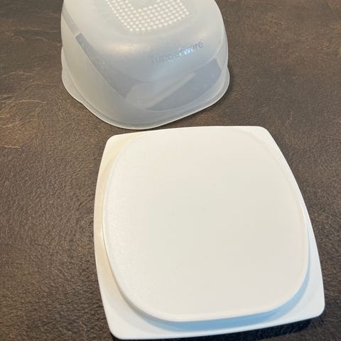 Tupperware ostebox med låg hvid plast
