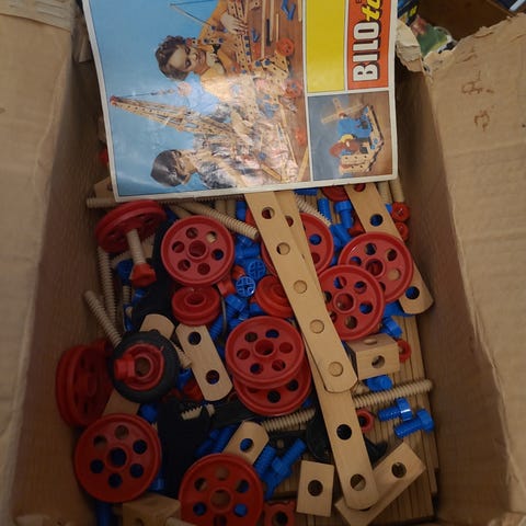 Brio Briomec 85 byggesæt legetøj i original emballage. Aldrig åbnet. Sættet består af forskellige byggeelementer i træ og plast, blandt andet plader, bjælker, hjul, skruer, møtrikker og værktøj. Delene kan samles til flere typer modeller, for eksempel køretøjer og fly. Velegnet som konstruktionslegetøj til børn, der vil øve finmotorik og byggefærdigheder.