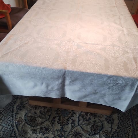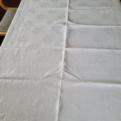 Dug, ældre damaskdug, Måler ca. 135 x 125. Der er et lille hul