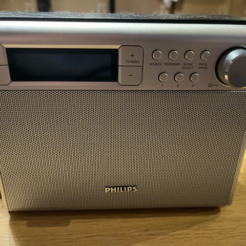 Philips bærbar radio med FM-modtagelse. Enheden har indbygget højttaler på fronten og manuel indstilling af frekvens via drejeknap på siden. Kabinettet er i sort og sølv plast. Radioen er egnet til brug i hjemmet, på kontoret eller andre steder, hvor der ønskes enkel adgang til FM kanaler.