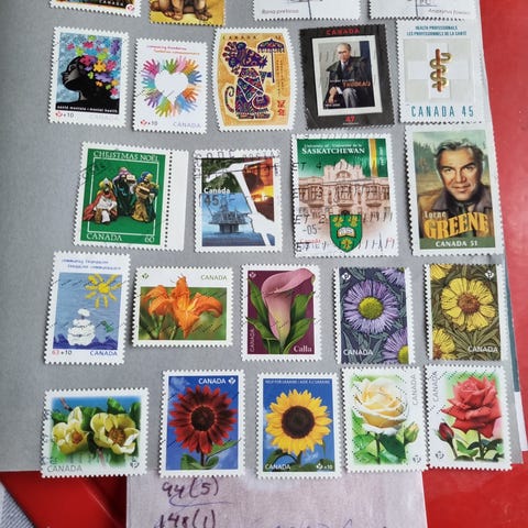Samling af canadiske frimærker med forskellige motiver. Lotten omfatter blandt andet serier med historiske skibe, portrætter, tematiske frimærker samt julemotiv. Flere af frimærkerne er i blokke og nogle er stemplede. Velegnet til frimærkesamlere med fokus på Canada og tematiske motiver som skibe, historie og jul.