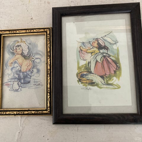 Billede med to børn i gylden ramme. B44cm. H52cm