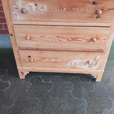 Pæn regulær stor kommode i fyrretræ. Kan evt. males.