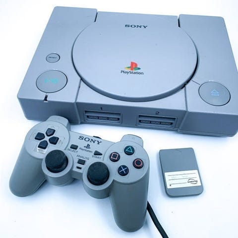 PlayStation 1 med 1 controller og memory card