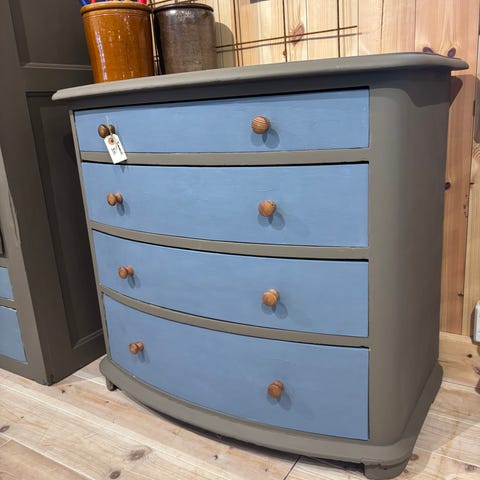 Stor flot kommode i fyrretræ med fine beslag samt beskyttelse ved nøglehul.