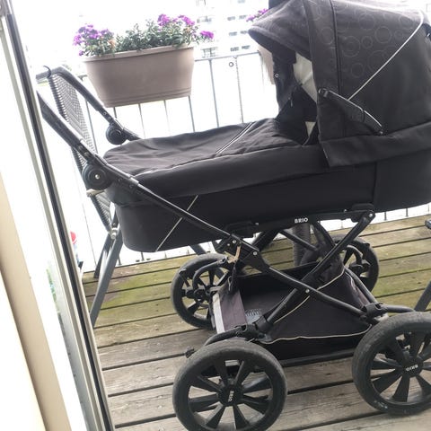 Rigtig flot BRIO barnevogn sælges. Den har altid stået inde, har fået 4 HELT NYE HJUL , der er regnslag myggenet sele og en god tyk madras . Pga. de nye hjul er prisen , derefter. Røgfrit hjem . Hentes på adressen . Liggemål 96 cm