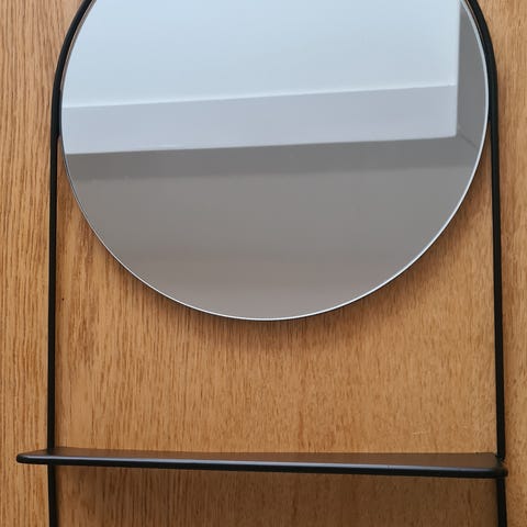Spejl med tilhørende hylde og knagerække