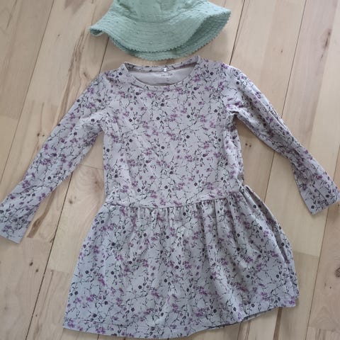 Name it kjole til pige i str. 110. Kjolen er lyserød og fremstillet i bomuld. Modellen har kortærmet overdel med print foran og påsat skørt, som giver kjolen et let og behageligt fald. Velegnet som hverdagskjole eller til leg og fritid.